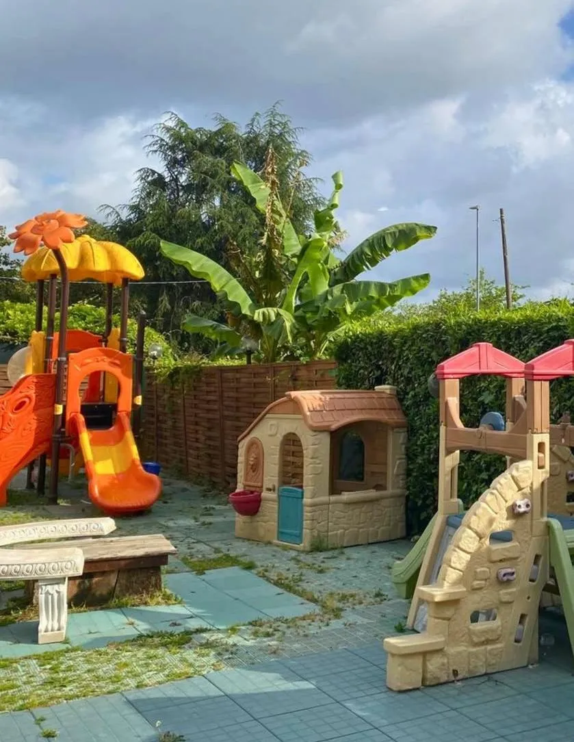 E una volta finito, potranno andare a giocare in 600 metri quadri di giardino completo di altalene, scivolo e molto altro